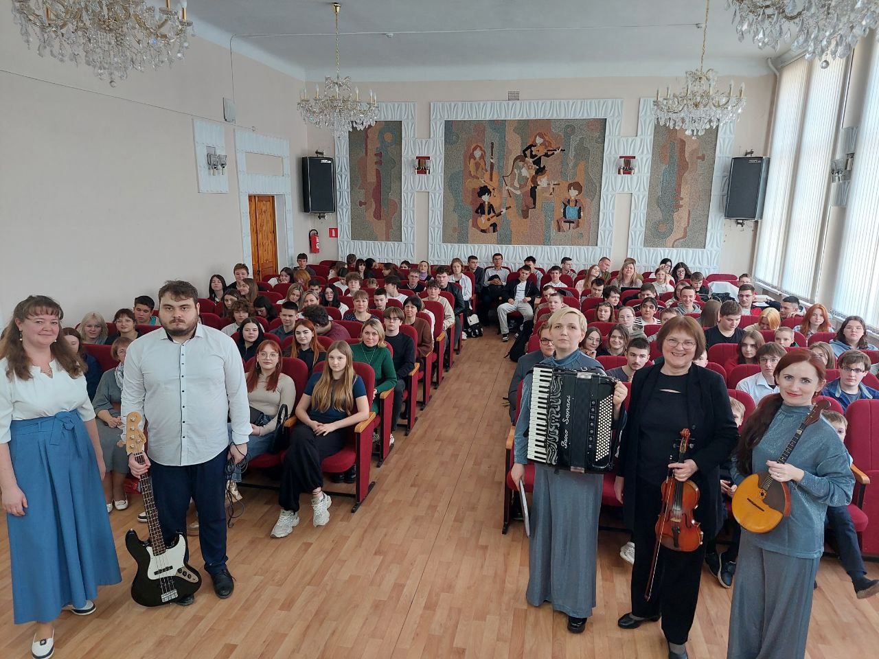 03.04.2025 Просмотров: 1127Концерт «Весеннее настроение 3 апреля для учащихся старших классов общеобразовательных школ Пролетарского района прошёл в рамках программы ПУШКИНСКАЯ КАРТА, в котором приняли участие преподаватели различных специальностей.