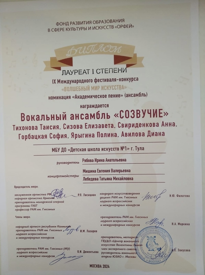 24-25 февраля в Москве проходил IX Международный фестиваль-конкурс «Волшебный мир искусства». Вокальное исполнительство. Академическое пение. (солисты-вокалисты, вокальные ансамбли). Председателем жюри этого конкурса бессменно является заслуженная артистка РФ, народная артистка Армении, преподаватель молодежной оперной программы ГАБТ, профессор РАМ им. Гнесиных Рузанна Павловна Лисициан.