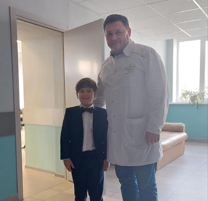 На торжественном собрании медицинского персонала Детской поликлиники №3 выступил учащийся 3 класса Михаил Пуханов
