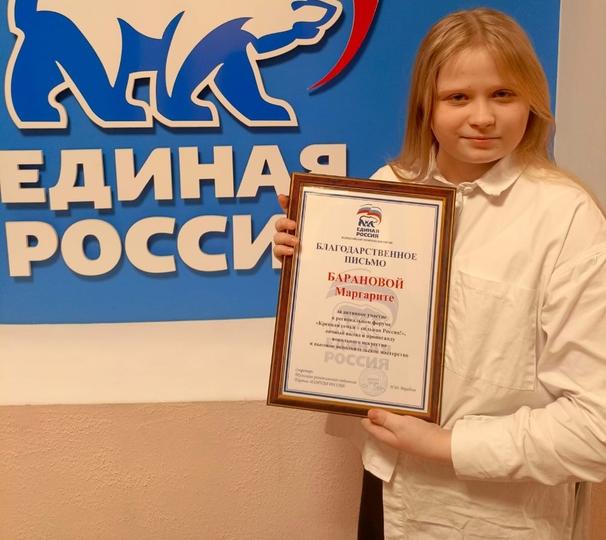 26 апреля 2024, Пятница 09:04 Просмотров: 638Поздравляем Маргариту Баранову (преподаватель Елена Анатольевна Проняева) с вручением Благодарственного письма "За активное участие в региональном форуме "Крепкая семья - сильная Россия!"