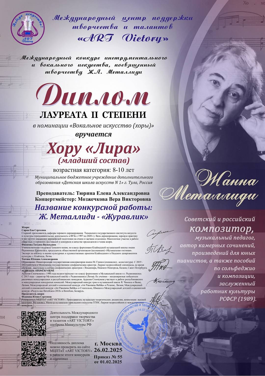 4 марта 2025, Вторник 12:03 Просмотров: 477Поздравляем ПОБЕДИТЕЛЕЙ Международного конкурса инструментального и вокального искусства, посвящённого творчеству Ж.Л. Металлиди!