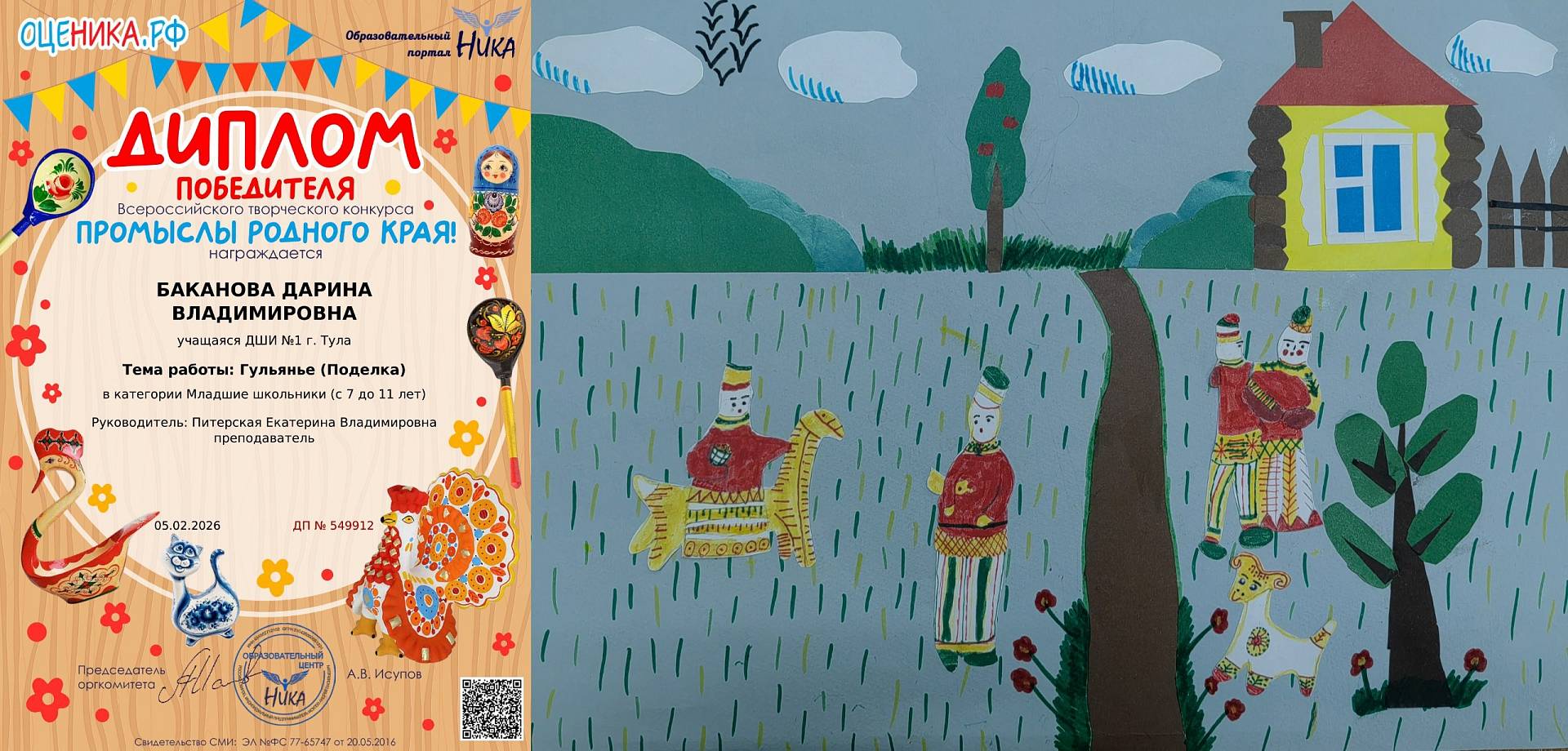 Поздравляем с дипломами Всероссийского творческого конкурса "Промыслы родного края"...