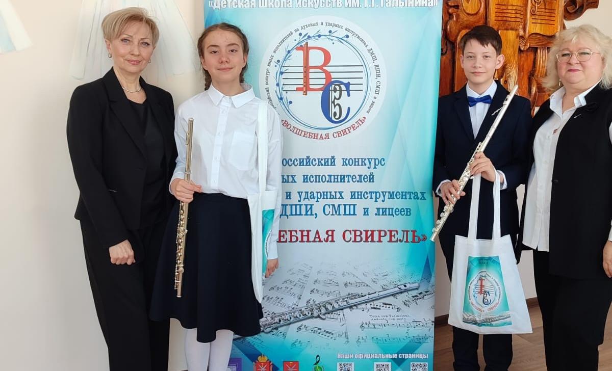Поздравляем с успешным выступлением на VI Всероссийском конкурсе юных исполнителей на духовых и ударных инструментах ДМШ, ДШИ, СМШ "Волшебная свирель" учащихся класса преподавателя Пролыгиной Т.Л., концертмейстер Бирюкова М.В.