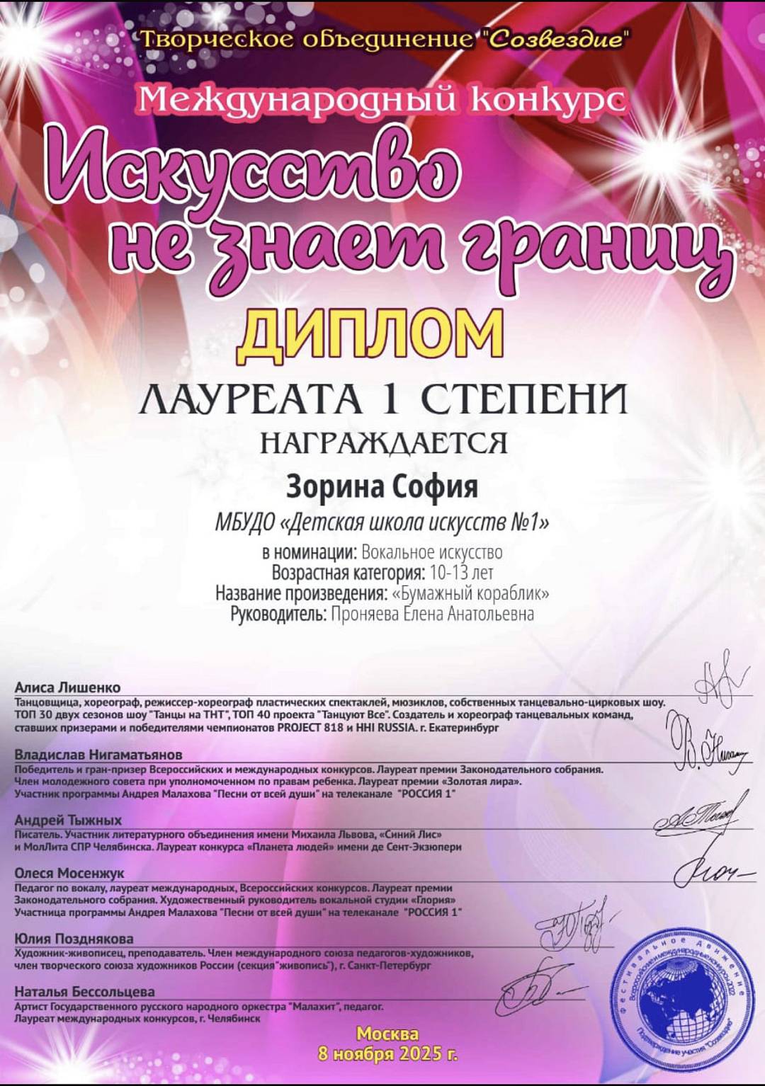 Анатольевна Проняева) с Дипломом лауреата 1 степени Международного конкурса