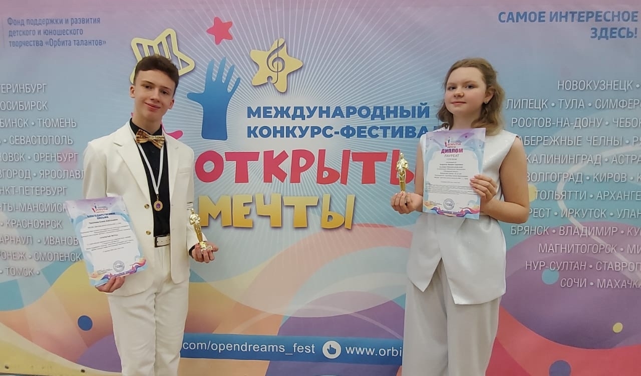 15 декабря 2025, Понедельник 12:12 Просмотров: 87Поздравляем Валерию Петрунину и Илью Лобанова (преподаватель Елена Анатольевна Проняева) с Дипломами лауреатов 1 степени Международного конкурса-фестиваля «Открытые мечты»!