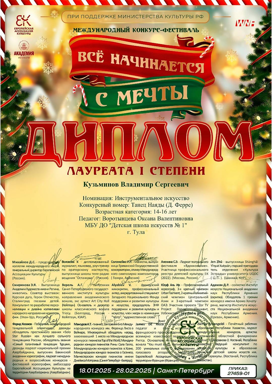 Поздравляем Владимира Кузьминова с Дипломами лауреата I степени Международного конкурса-фестиваля