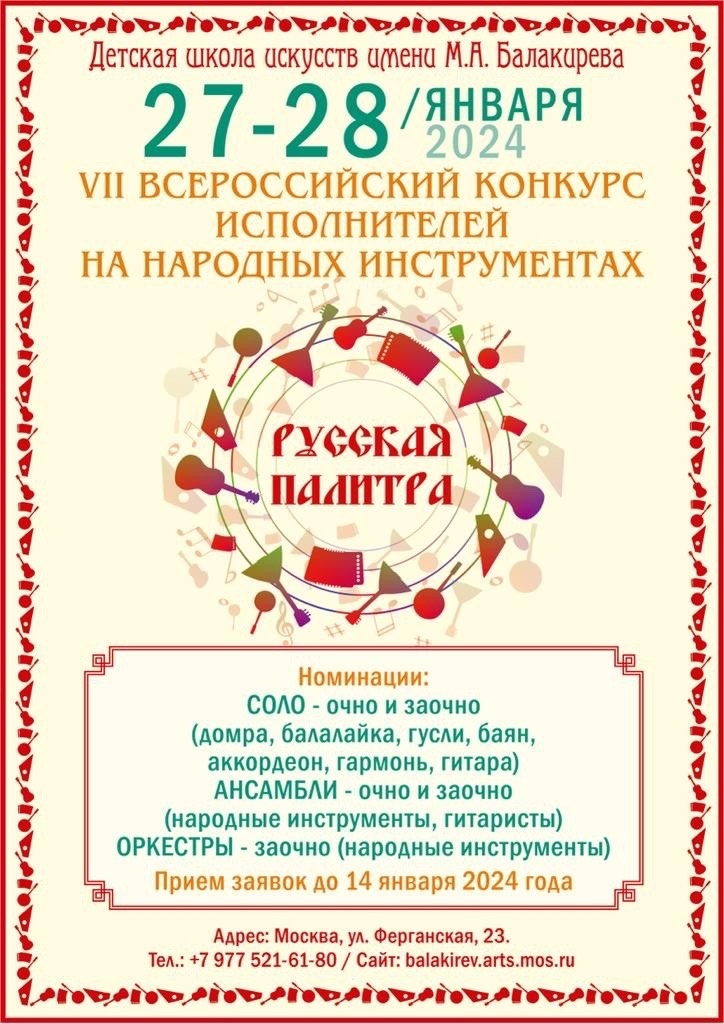 Поздравляем ПОБЕДИТЕЛЕЙ VII Всероссийского конкурса юных исполнителей на народных инструментах "Русская палитра"!