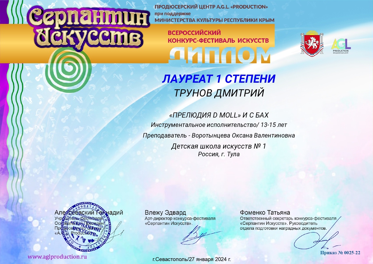 Диплом лауреата I степени: