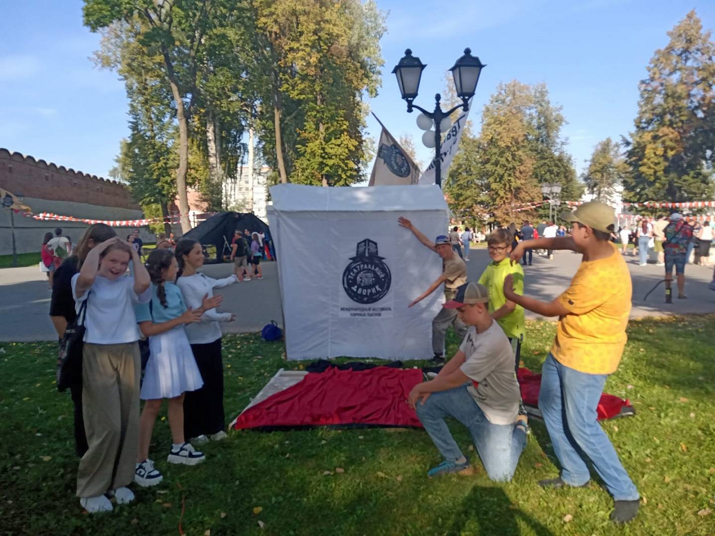 14 сентября юные артисты Образцового коллектива ДМТ «Синяя птица» и режиссёр театра Марина Леонидовна Алексеенко посетили XVI фестиваль «Театральный дворик» в Городском кремлёвском саду и с большим интересом посмотрели выступление артиста из Санкт-Петербурга Евгения Чумака («Клоун Чу»).