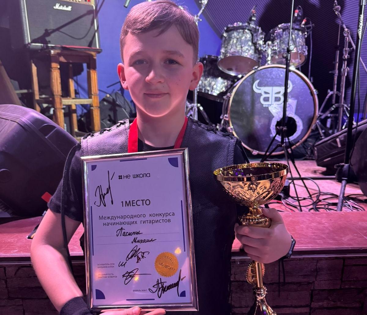 3 марта 2026, Вторник 12:03 Просмотров: 50Поздравляем Михаила Пасюту (преп. Воротынцева О.В.) с ПОБЕДОЙ -1 место на Международном конкурсе начинающих гитаристов! Конкурс проходил в два тура. Михаил отлично прошёл все конкурсные испытания и стал ПОБЕДИТЕЛЕМ!