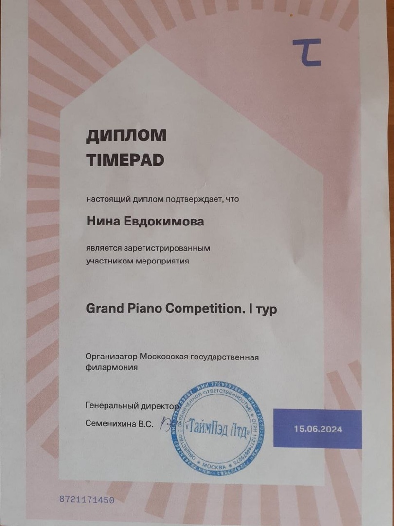 18 июня 2024, Вторник 06:06 Просмотров: 708IV Международный конкурс молодых пианистов GRAND PIANO COMPETITION