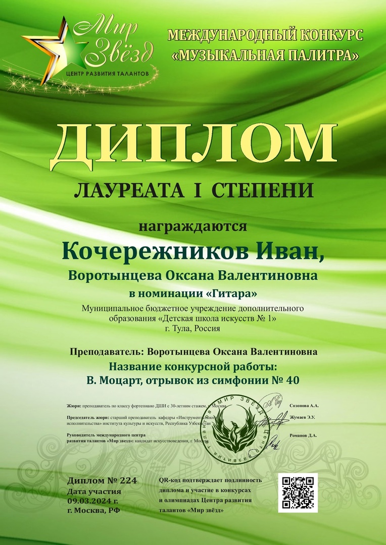 Поздравляем ПОБЕДИТЕЛЕЙ Международного конкурса «Музыкальная палитра» учащихся класса Оксаны Валентиновны Воротынцевой!