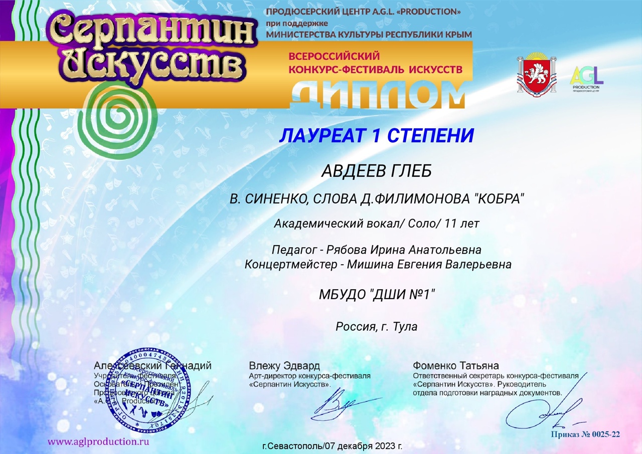 Глеб Авдеев -Диплом лауреата Ii степени.