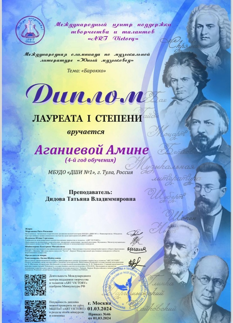 олимпиады по музыкальной литературе «Юный музыковед» (тема «Барокко») Амину